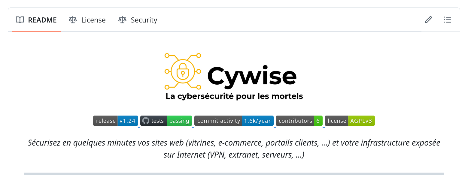 Pour ceux qui n'auraient pas vu notre annonce récente : Cywise est désormais disponible en Open Source sous licence AGPLv3. Ce choix s'inscrit dans notre volonté de renforcer la transparence, l'auditabilité et l'accessibilité de notre solution.
